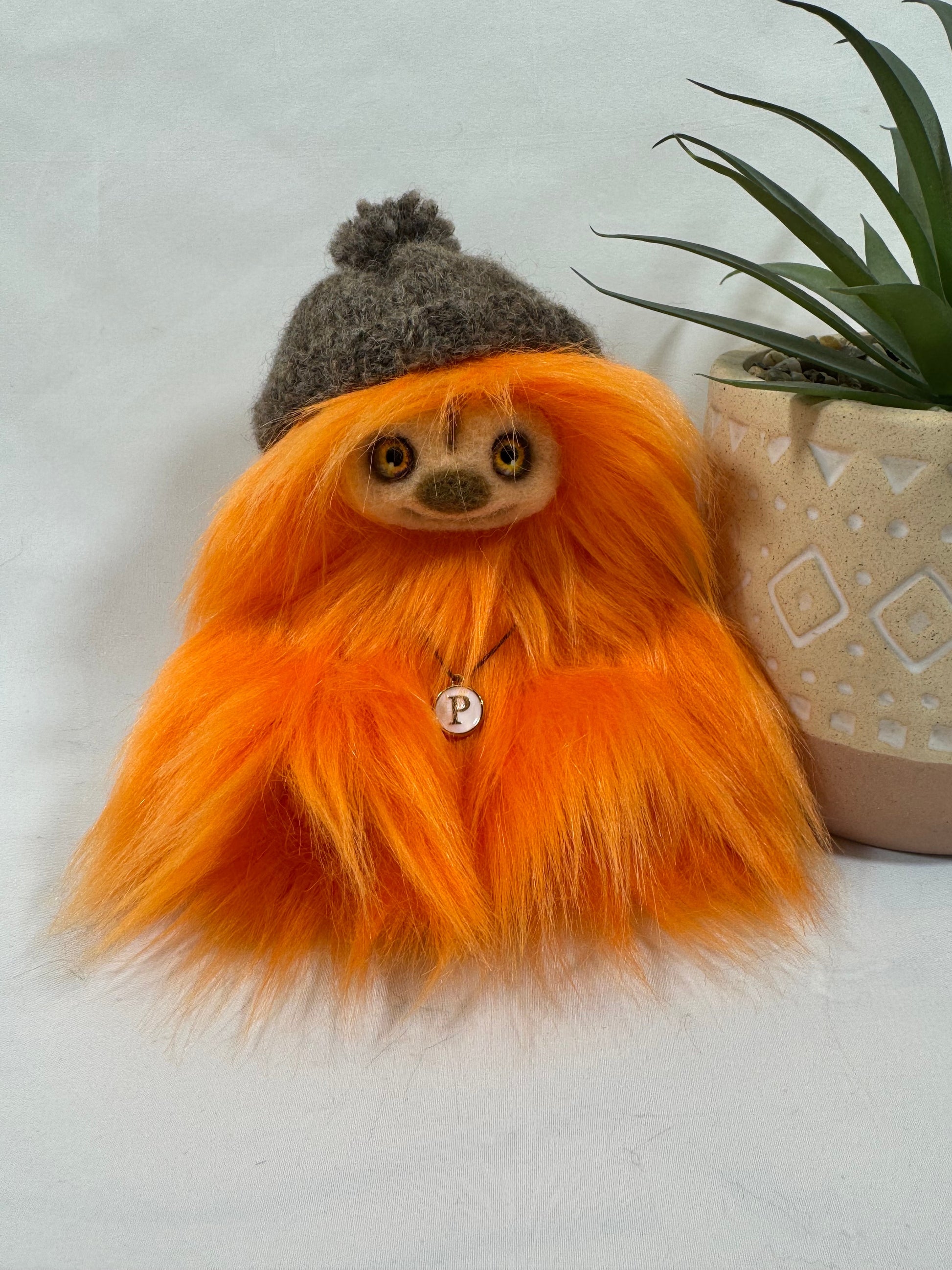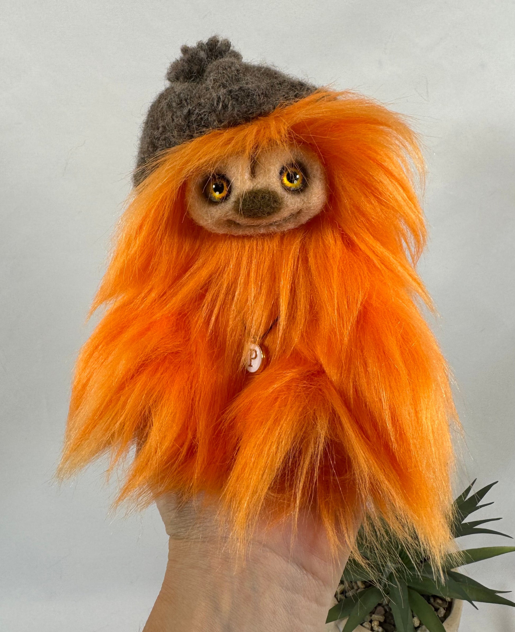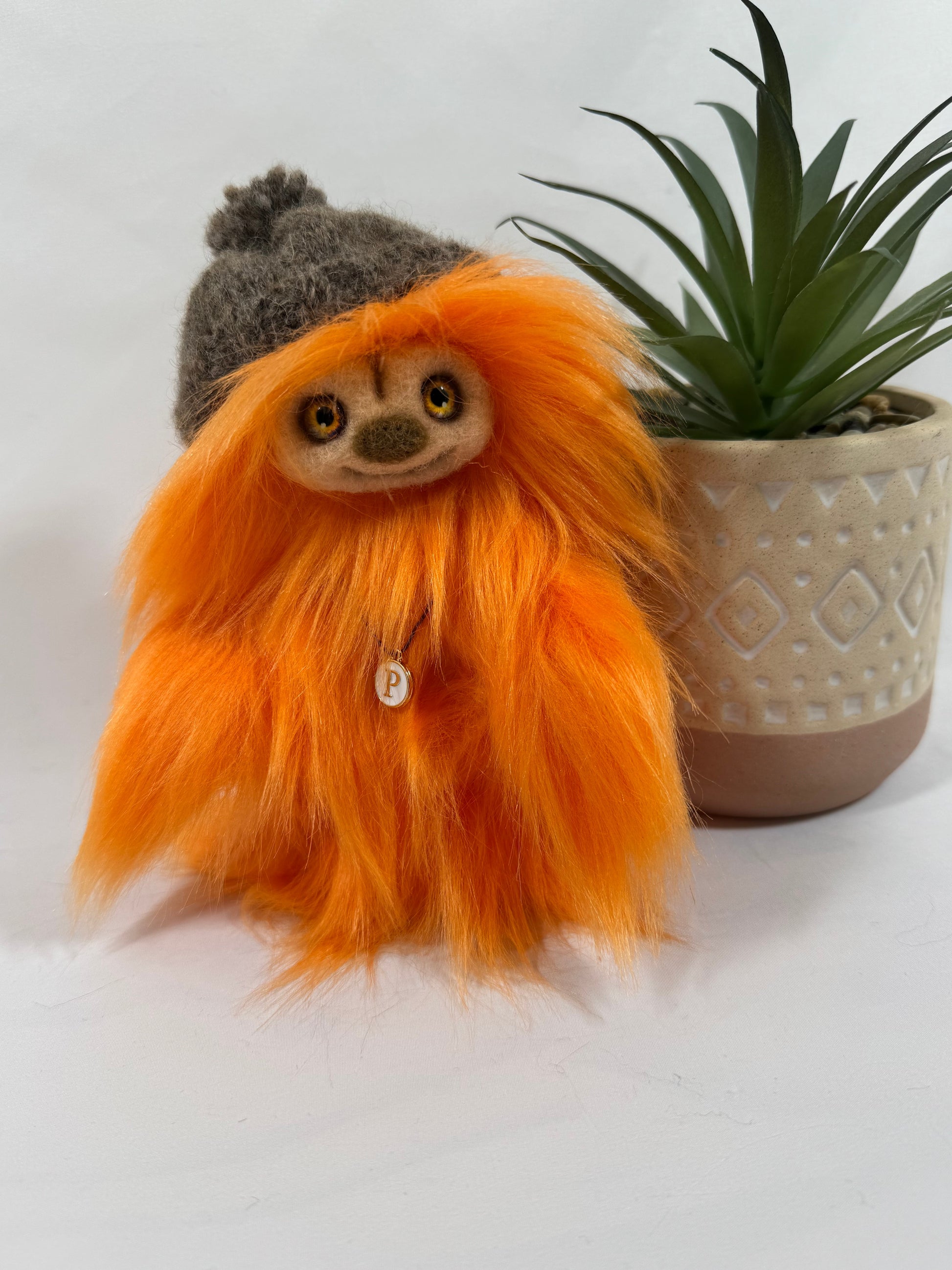 Voici Potiron, une adorable Frimousse de 17 cm, entièrement réalisée à la main dans l’atelier Un Ours dans ma Maison.