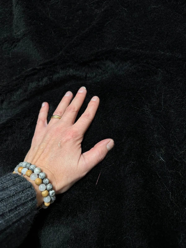 Coupon de fausse fourrure épaisse mais légère à poils mi-longs noir 30cm x 150cm
