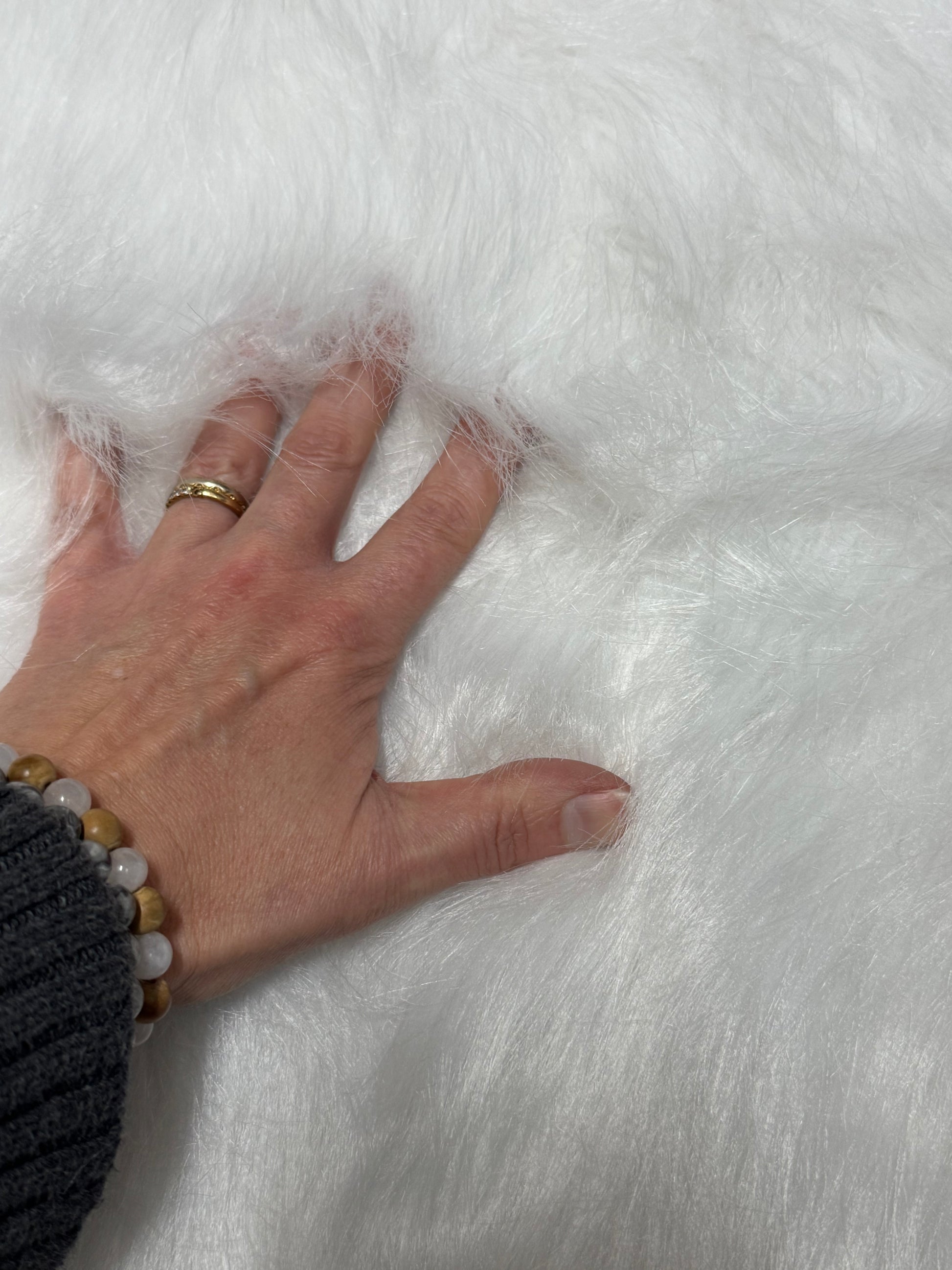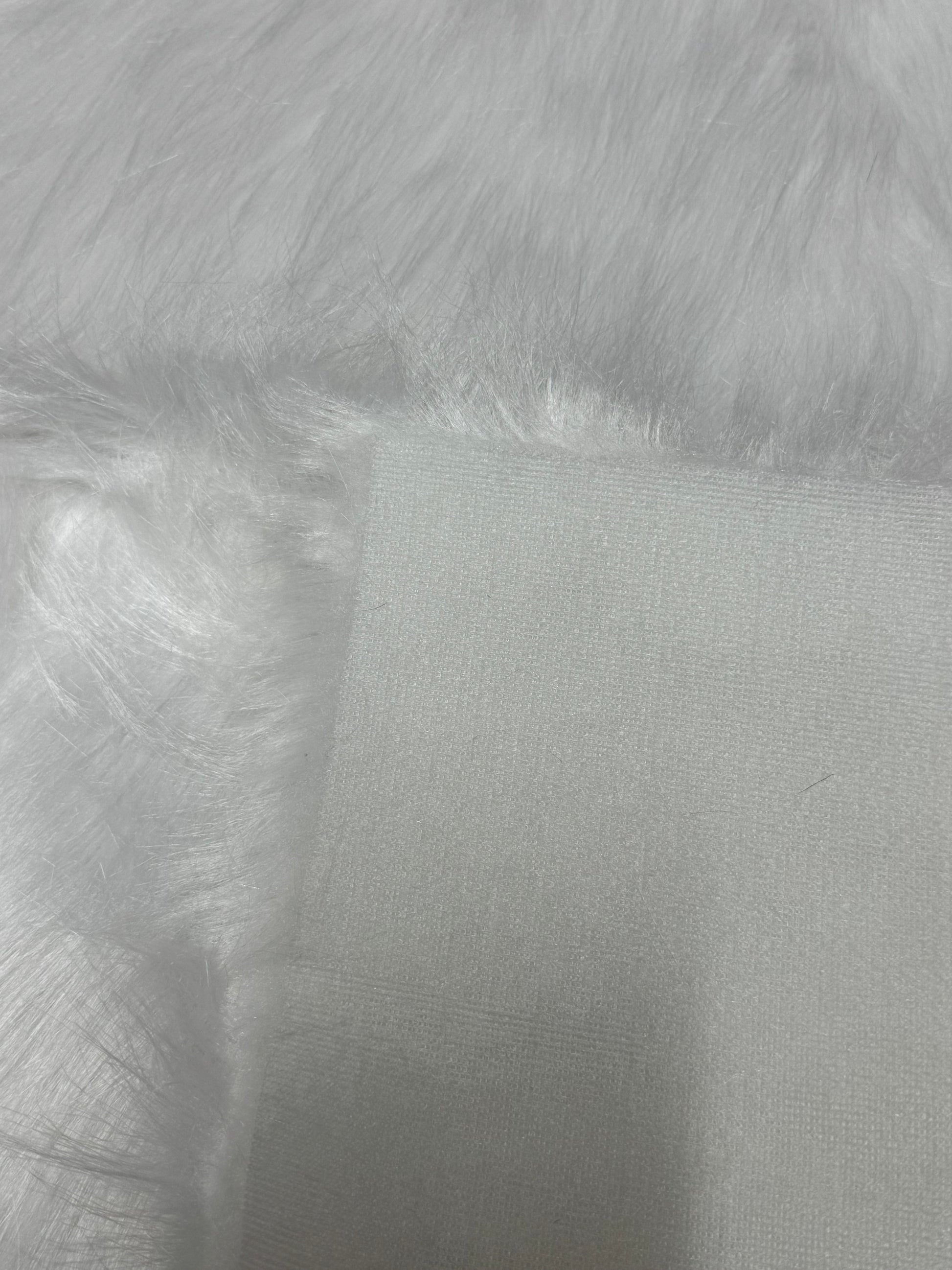 Coupon fausse fourrure blanche 30x82 cm – poils 3,5 cm – tissu couture