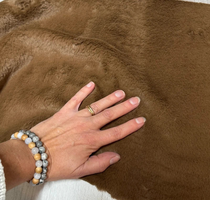 Coupon tissu fausse fourrure douce à poils mi-longs marron 30cm x 154cm