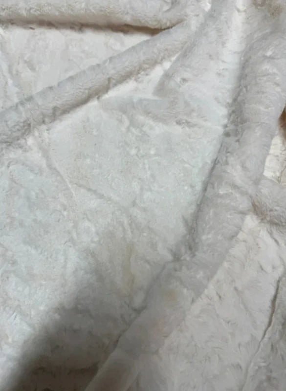Coupon tissu fausse fourrure douce blanc crème texturée à poils courts 30cm x 153cm