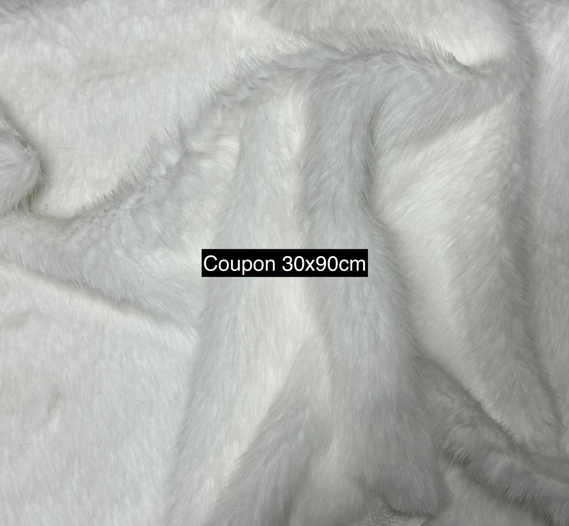 Coupon tissu fausse fourrure douce épaisse de qualité blanc à poils longs 30cm x 90cm