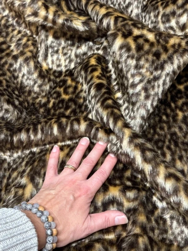 📍📍Coupon de fausse fourrure douce et légère à poils mi-longs imprimée couleur marron et beige