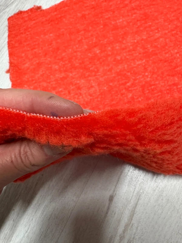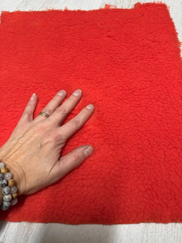 Coupon tissu fausse fourrure douce moutonnée à poils épais rouge orange 40cm x 35cm