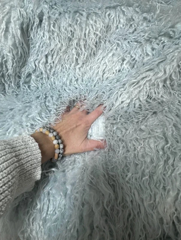 📍📍Coupon de fausse fourrure bouclée très douce à poils longs couleur bleu clair menthe