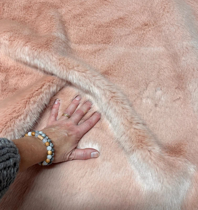 Coupon tissu fourrure douce, épaisse de qualité beige rose à poils longs 20cm x 94cm