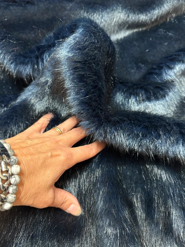 📍📍Coupon de fausse fourrure douce, épaisse à poils mi-longs couleur bleu marine