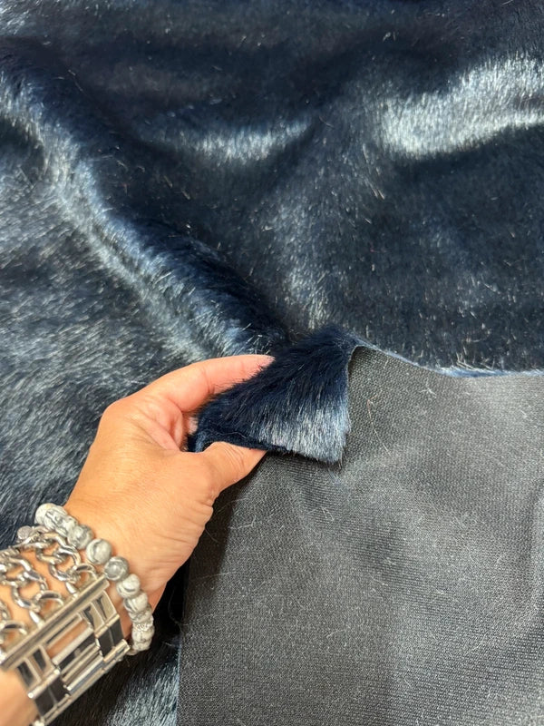 Coupon tissu fourrure douce, épaisse de qualité bleu marine à poils mi-longs 30cm x 74cm