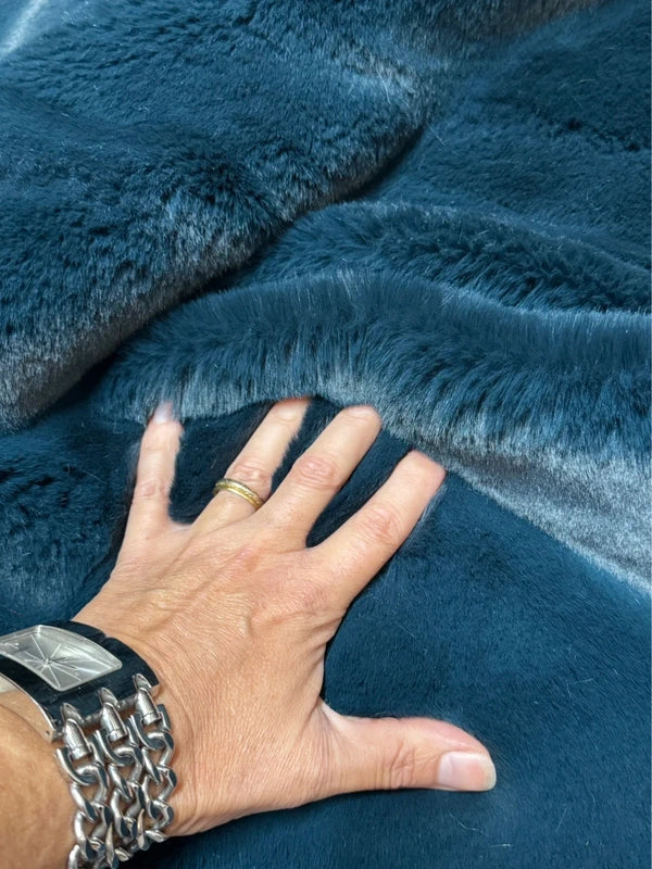 Coupon tissu fourrure douce, épaisse de qualité vert sarcelle à poils longs 40cm x 143cm