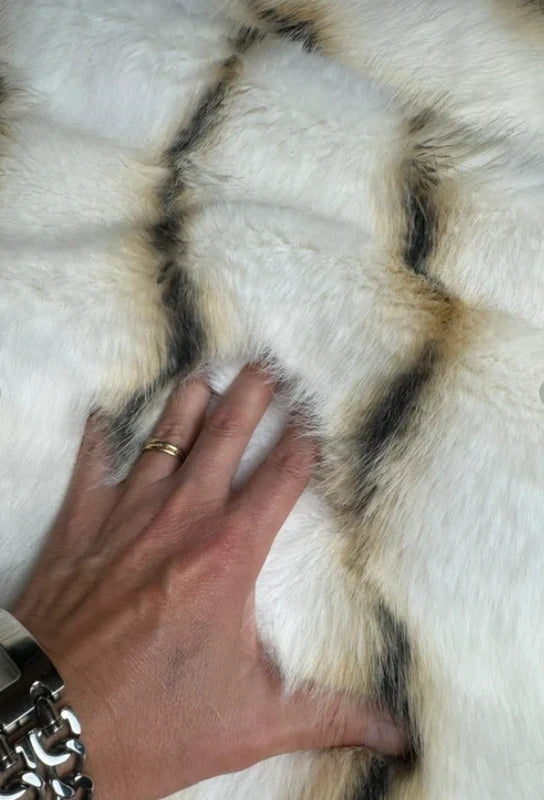 📍📍Coupon de fausse fourrure à poils longs couleur blanc rayé marron