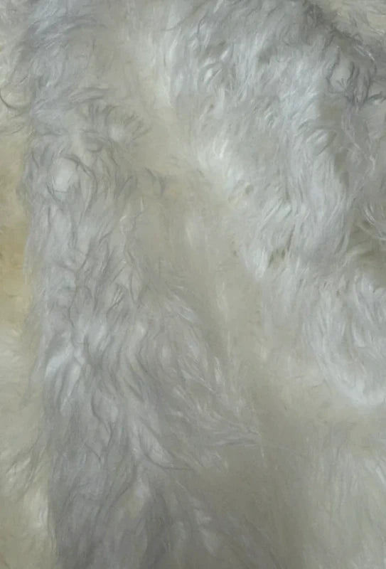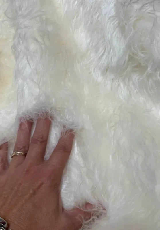 📍📍Coupon de fausse fourrure douce, et de qualité à poils longs légèrement ondulés couleur blanc cassé