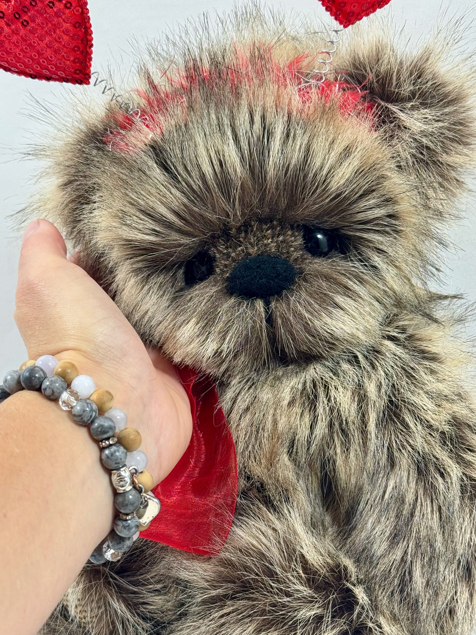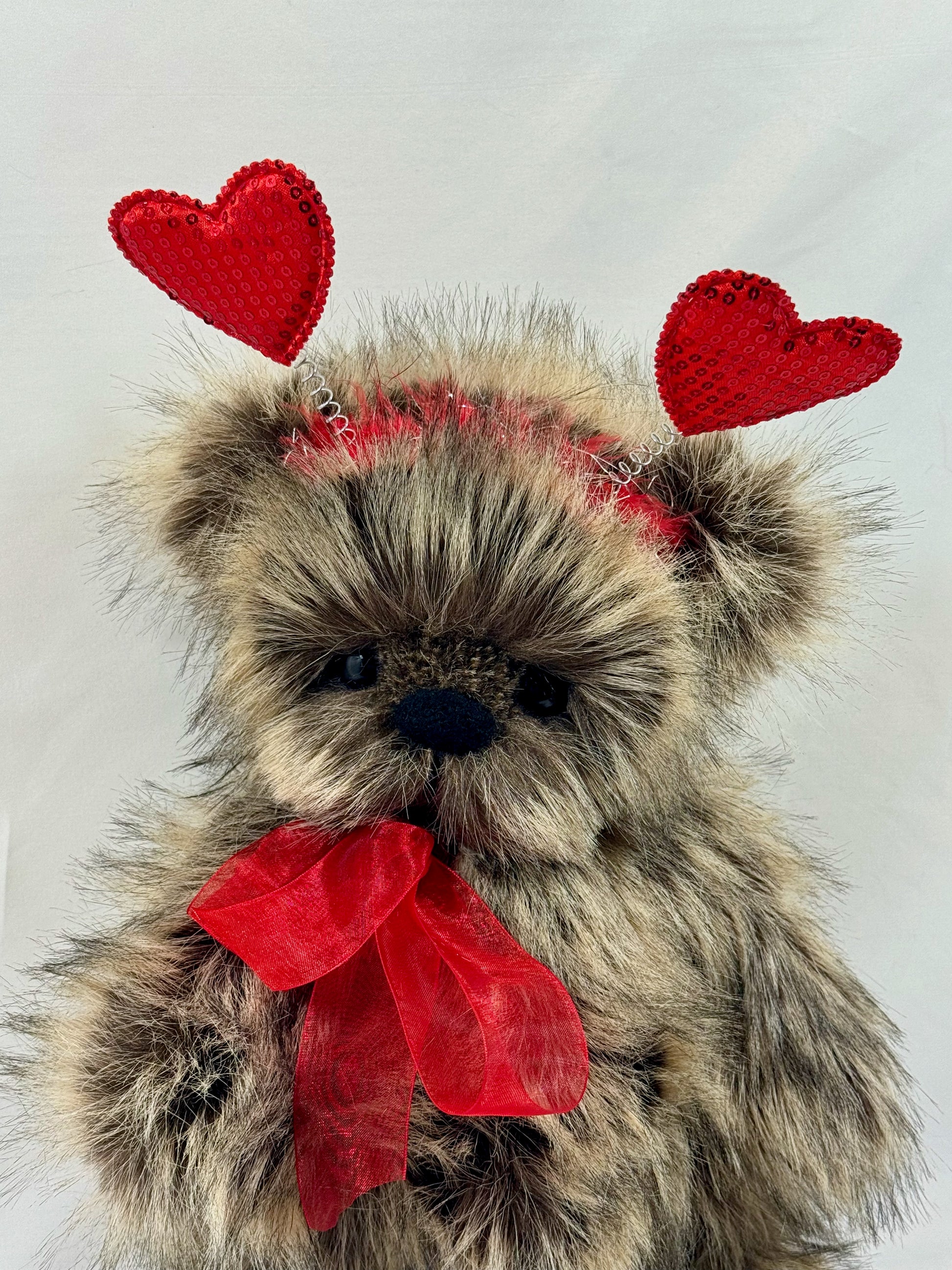 ✨ Lovers est une ourse tendre et délicate, toujours prête à offrir un instant de douceur. Avec son petit serre-tête cœurs et son regard profond, elle semble tout droit sortie d’une histoire d’amour d’hiver. Une pièce unique pensée pour les collectionneurs qui aiment les créations poétiques.