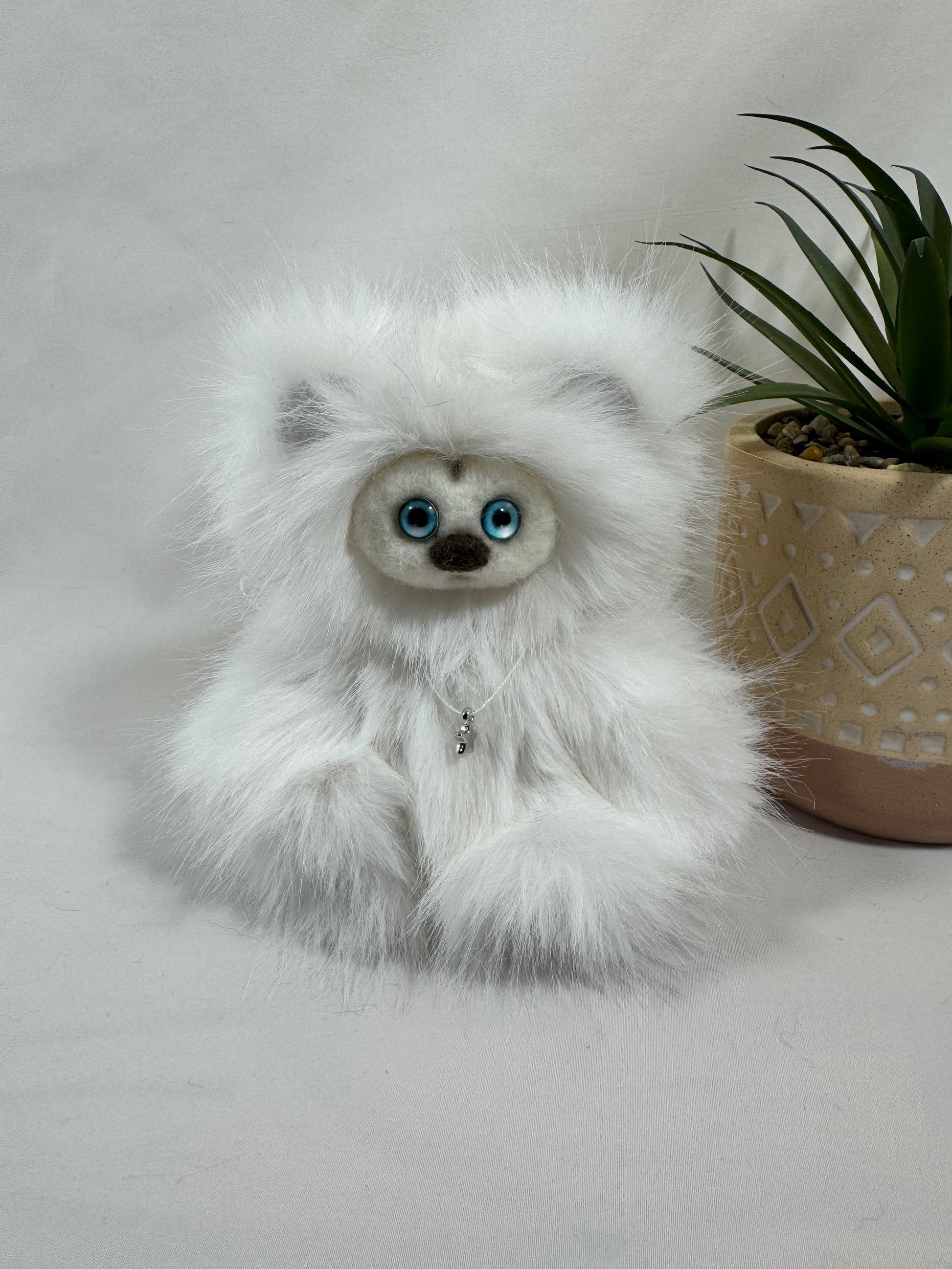 🧸 Matières : fausse fourrure blanche, visage feutré à l’aiguille