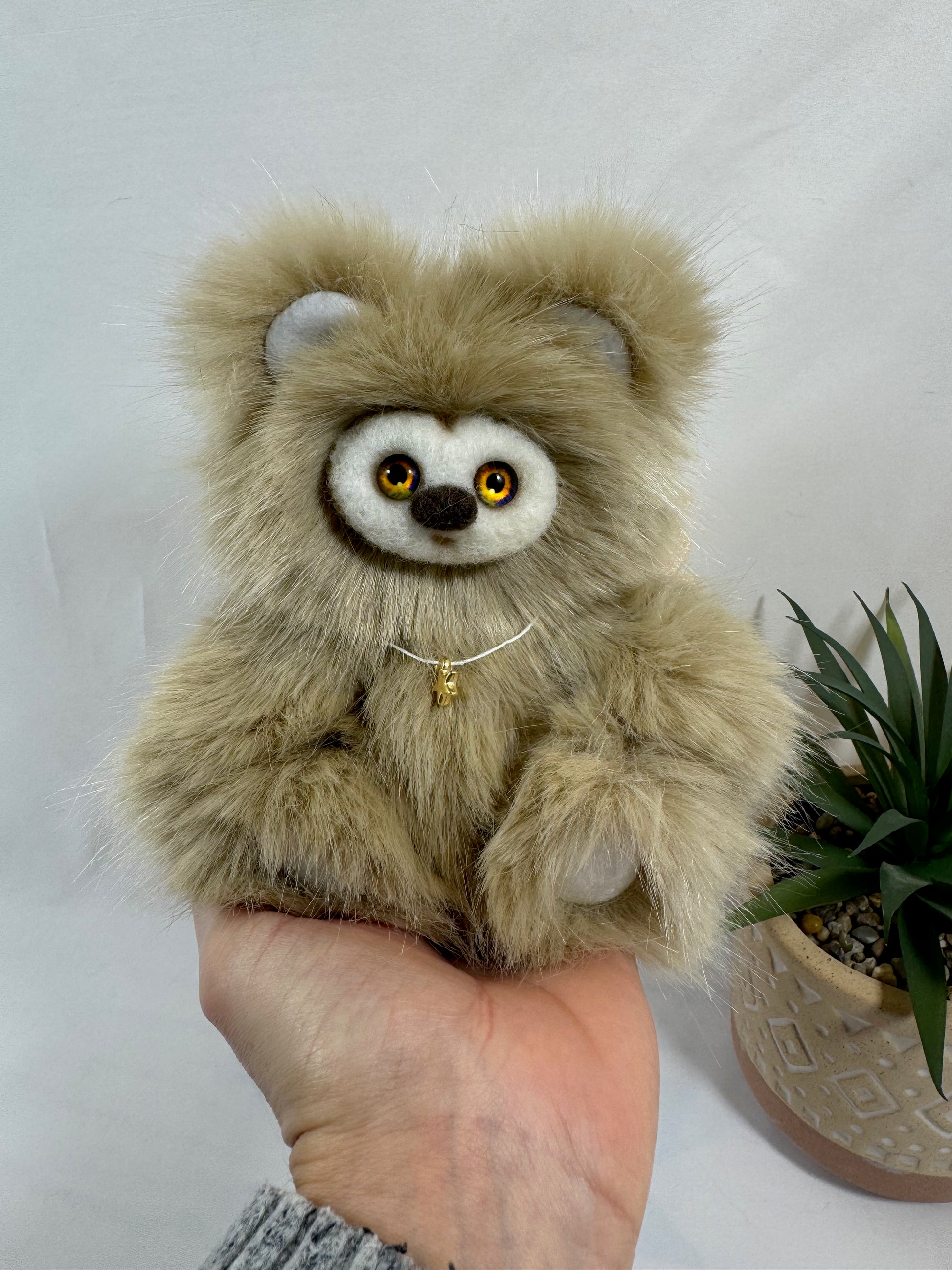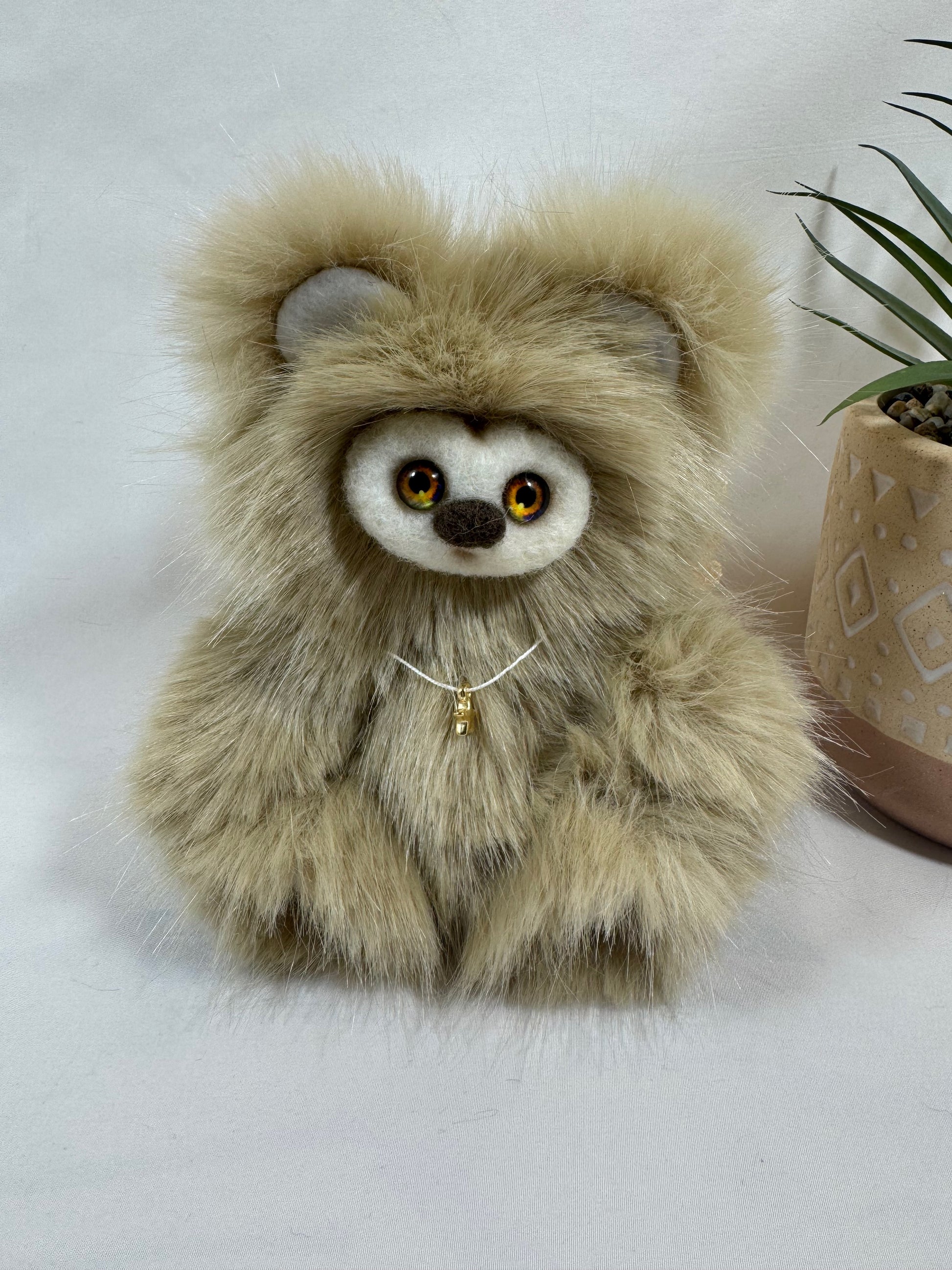🧸 Matières : fausse fourrure beige doré, visage feutré à l’aiguille