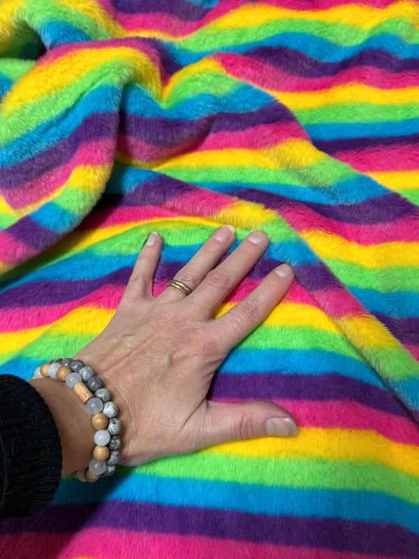 Coupon fausse fourrure arc-en-ciel poils courts 0,5 à 1 cm – 30 × 73 cm