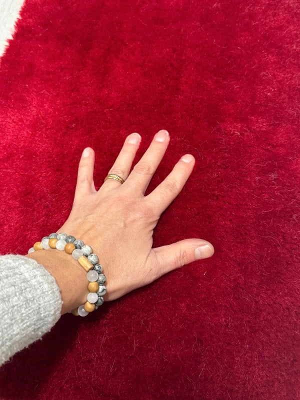 Coupon fausse fourrure douce épaisse bouclée de qualité rouge rubis à poils mi-longs 50cm x 30cm