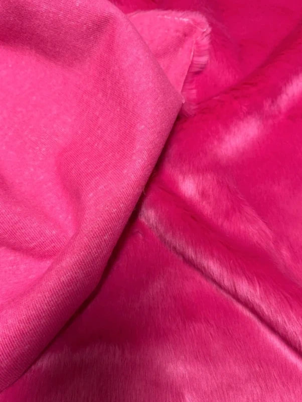 Coupon fausse fourrure douce et épaisse à poils mi-longs rose fuchsia 30cm x 155cm