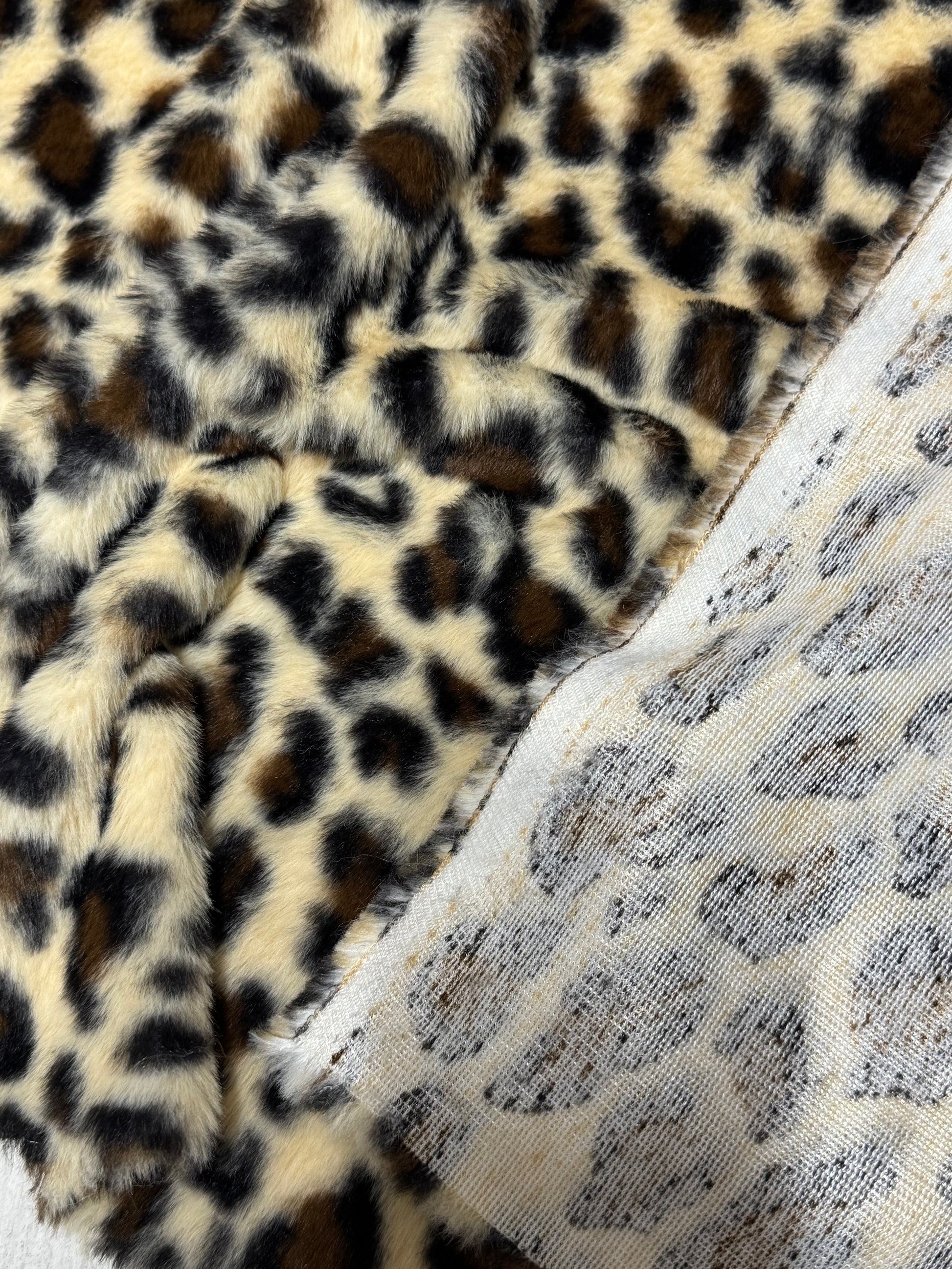 Coupon fausse fourrure léopard 25x175 cm – poils courts 0,5 à 1 cm – tissu couture