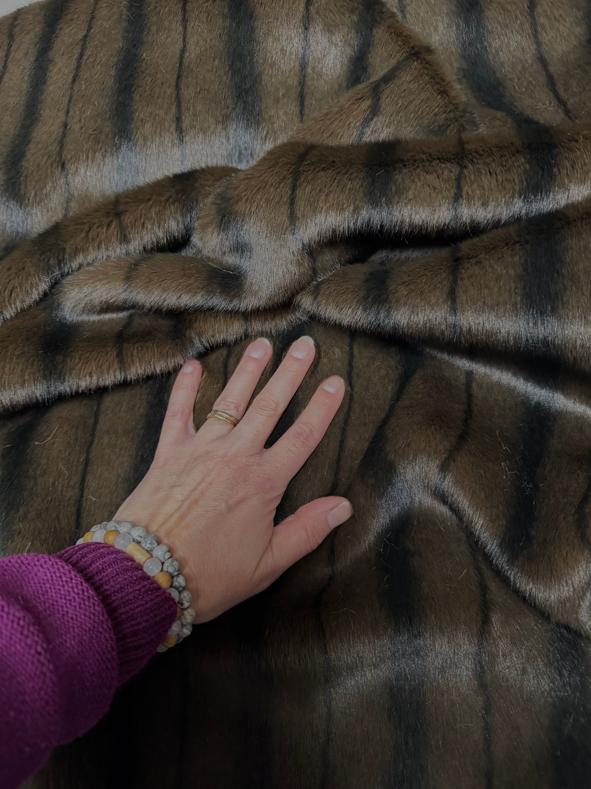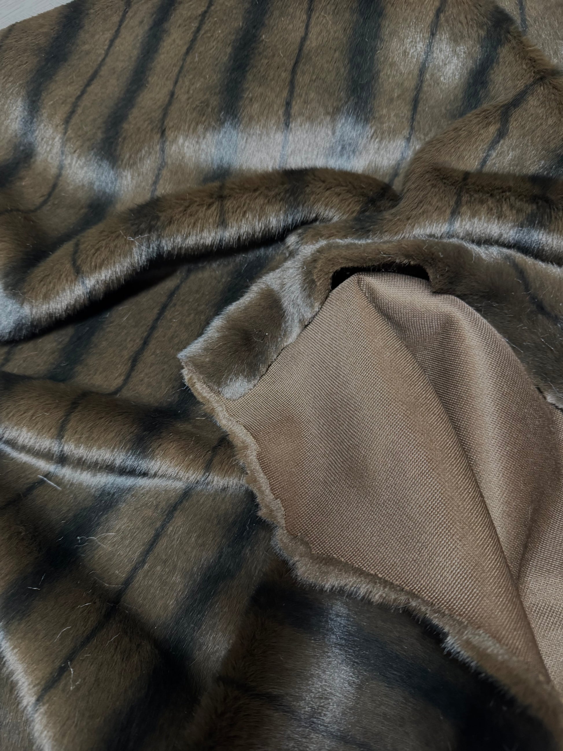 Coupon fausse fourrure marron rayée poils courts 1,5 cm – 30x83 cm