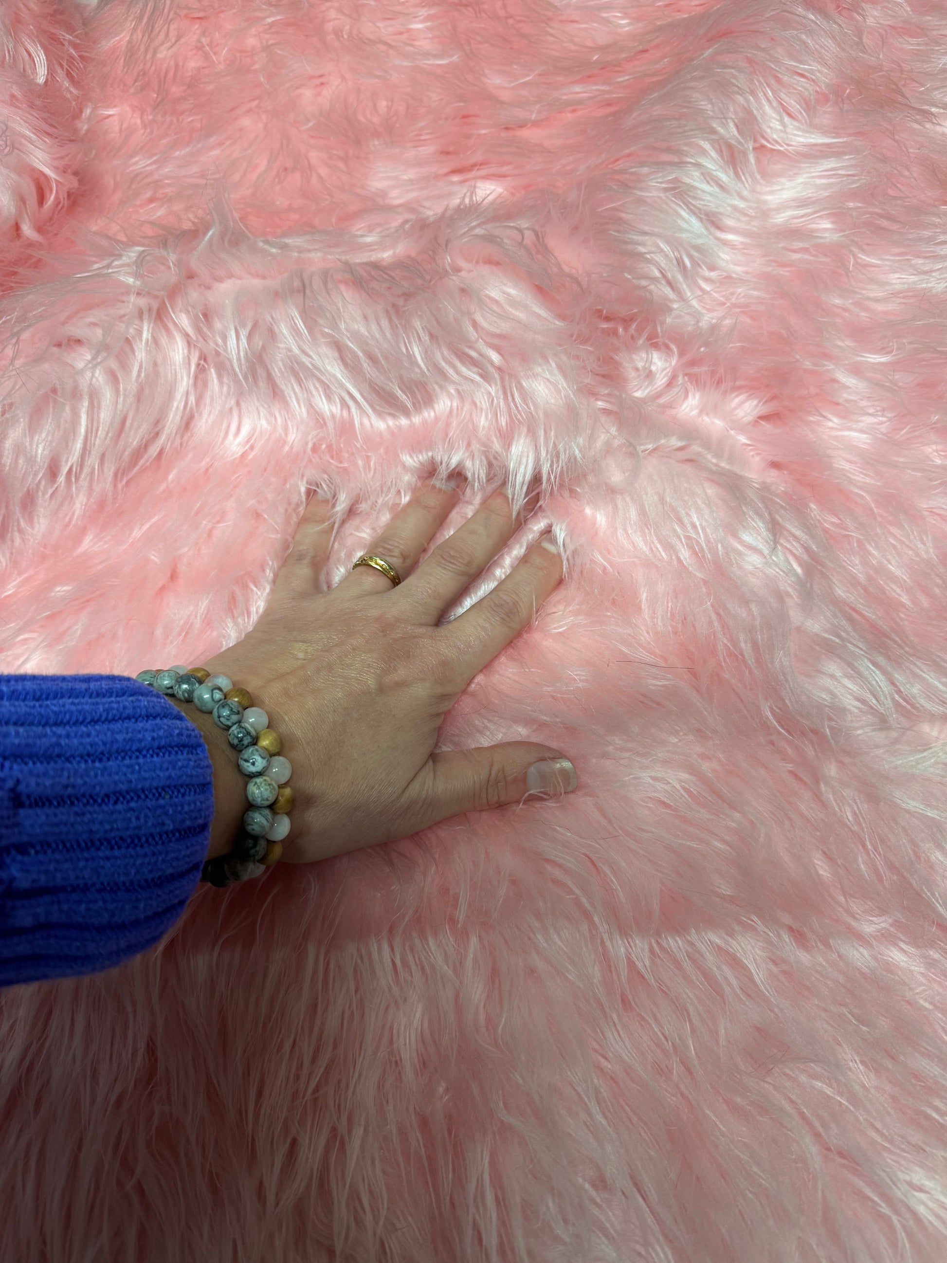 Coupon fausse fourrure rose poils longs 3 cm – 30x152 cm