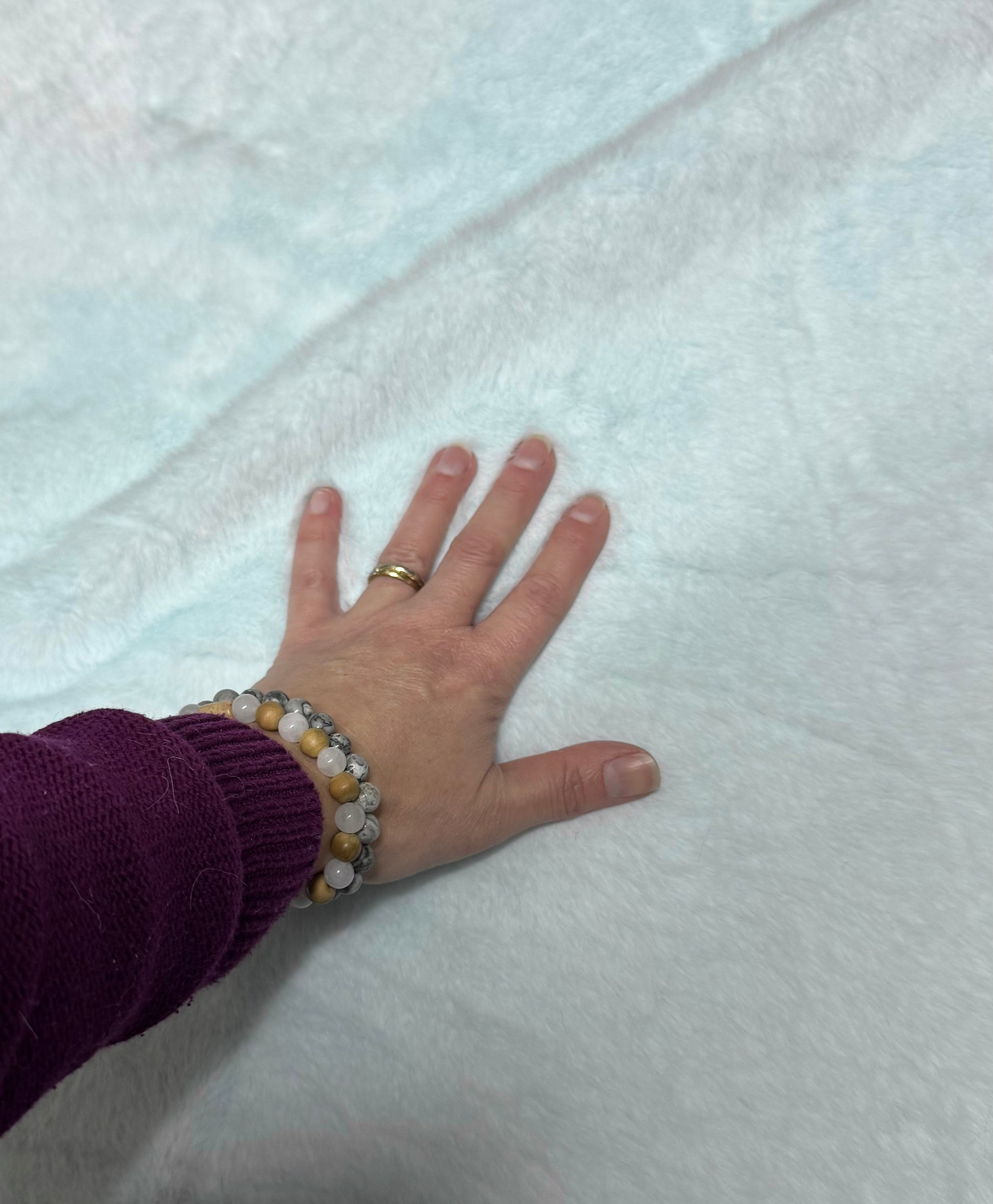 Coupon de fausse fourrure vert d’eau / menthe, très douce et lumineuse.