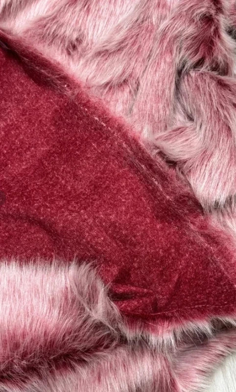 Coupon tissu fausse fourrure douce à poils longs rose à mèches blanches 30cm x 155cm