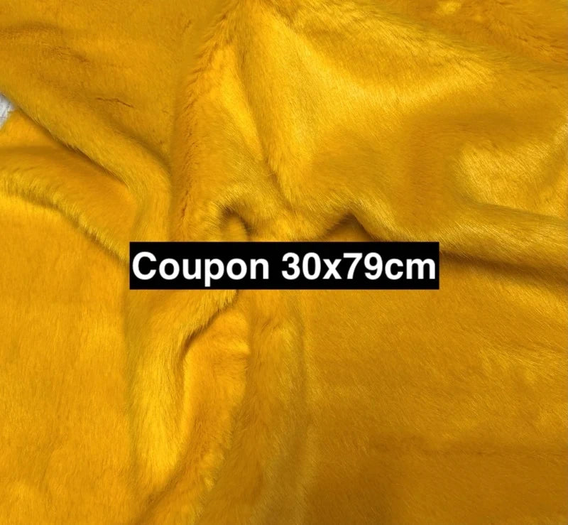 Coupon tissu fausse fourrure douce et épaisse jaune orange à poils mi-longs 30cm x 79cm