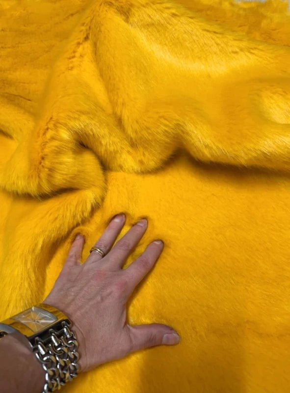 📍📍Coupon de fausse fourrure épaisse à mi-poils longs couleur jaune orangé