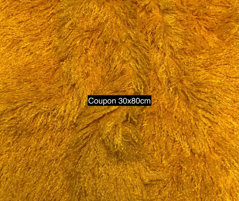 Coupon tissu fausse fourrure douce et légère à poils longs frisé jaune orange 30cm x 80cm