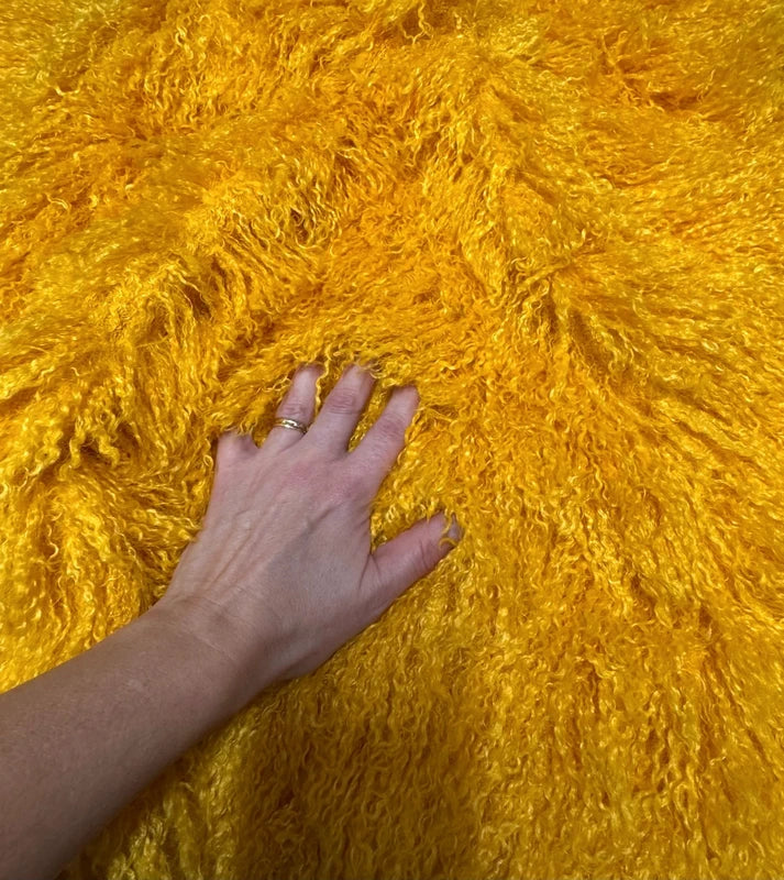 📍📍Coupon de fausse fourrure douce et légère à poils longs et frisé couleur jaune orange