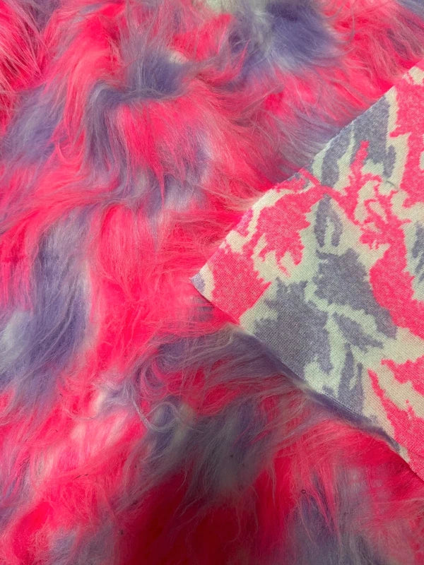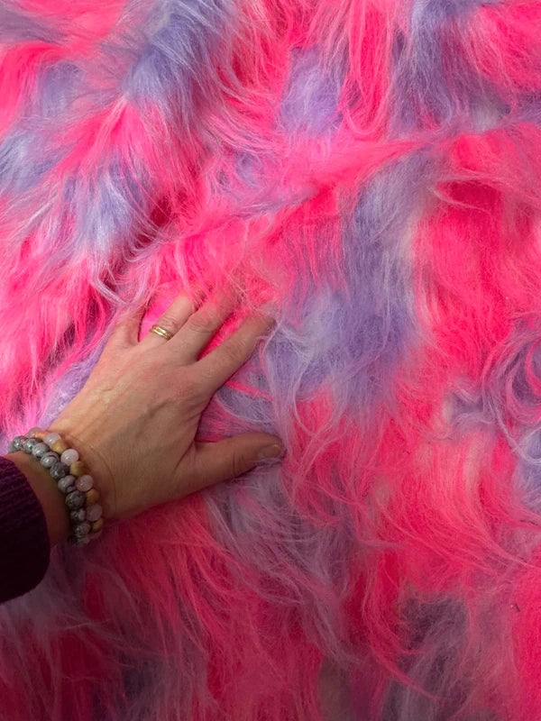 Coupon tissu fausse fourrure douce légère à poils longs violet rose blanc 30cm x140cm