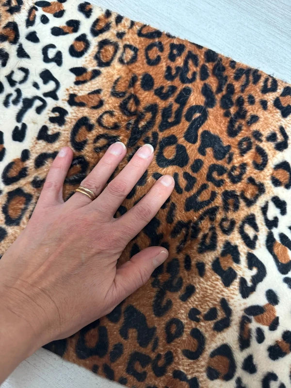 Coupon tissu fausse fourrure légère et ras à poils courts imprimée marron noir beige