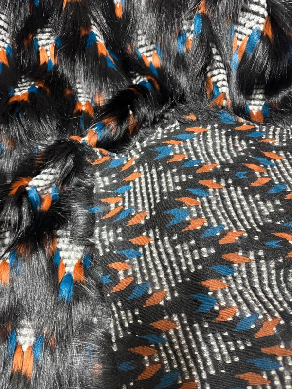 Coupon tissu fausse fourrure originale texturé à poils longs noir bleu marron 30cm x 157cm
