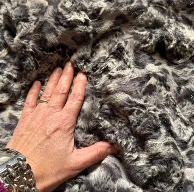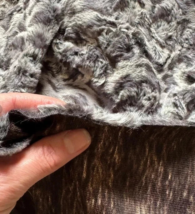 Coupon tissu fausse fourrure texturée bouclée à poils courts gris noir 35cm x 135cm
