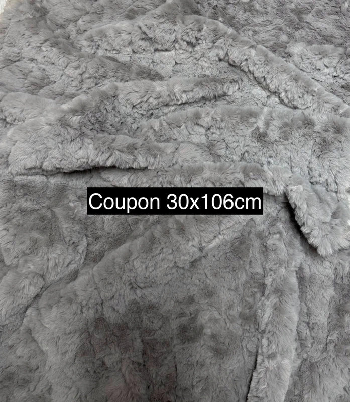 Coupon tissu fausse fourrure texturée bouclée à poils mi-longs gris 30cm x 106cm