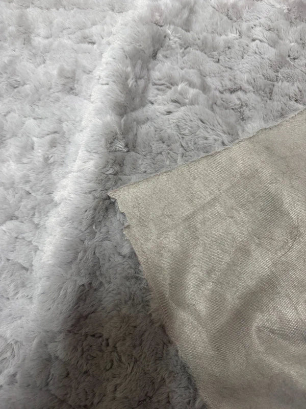 📍📍Coupon de fausse fourrure texturée effet bouclée à poils mi-longs couleur gris