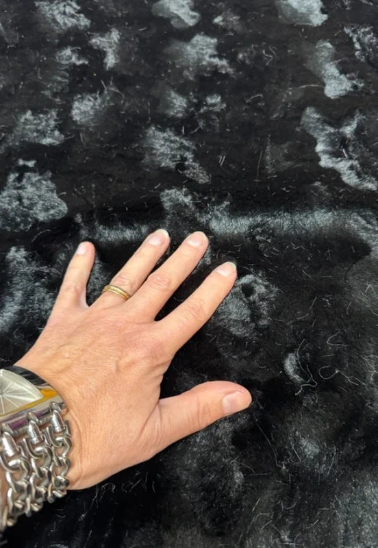 📍📍Coupon de fausse fourrure texturée douce à poils courts couleur noir