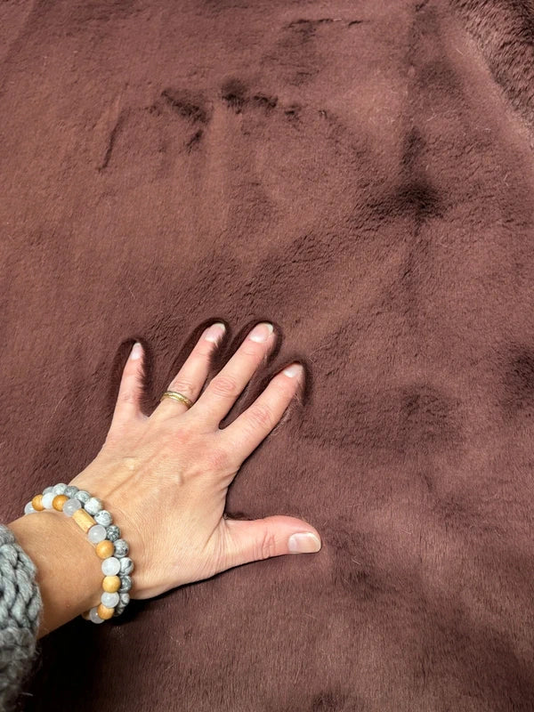 Coupon tissu fausse fourrure très douce et de qualité à poils mi-longs marron 30cm x 155cm