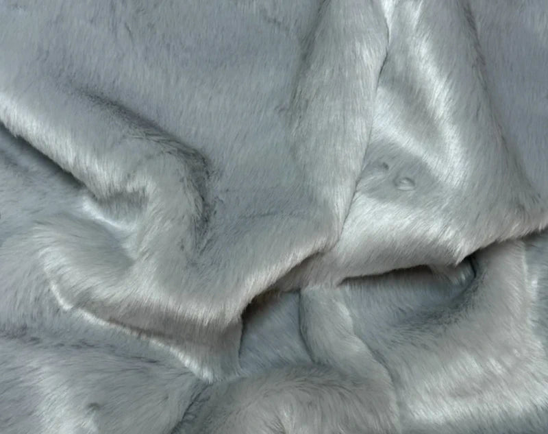 Coupon tissu fausse fourrure très douce légère à poils mi-longs gris clair 30cm x 75cm