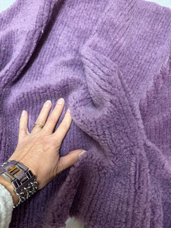 Coupon tissu fourrure douce de qualité texturé violet à poils mi- longs 30cm x 156cm