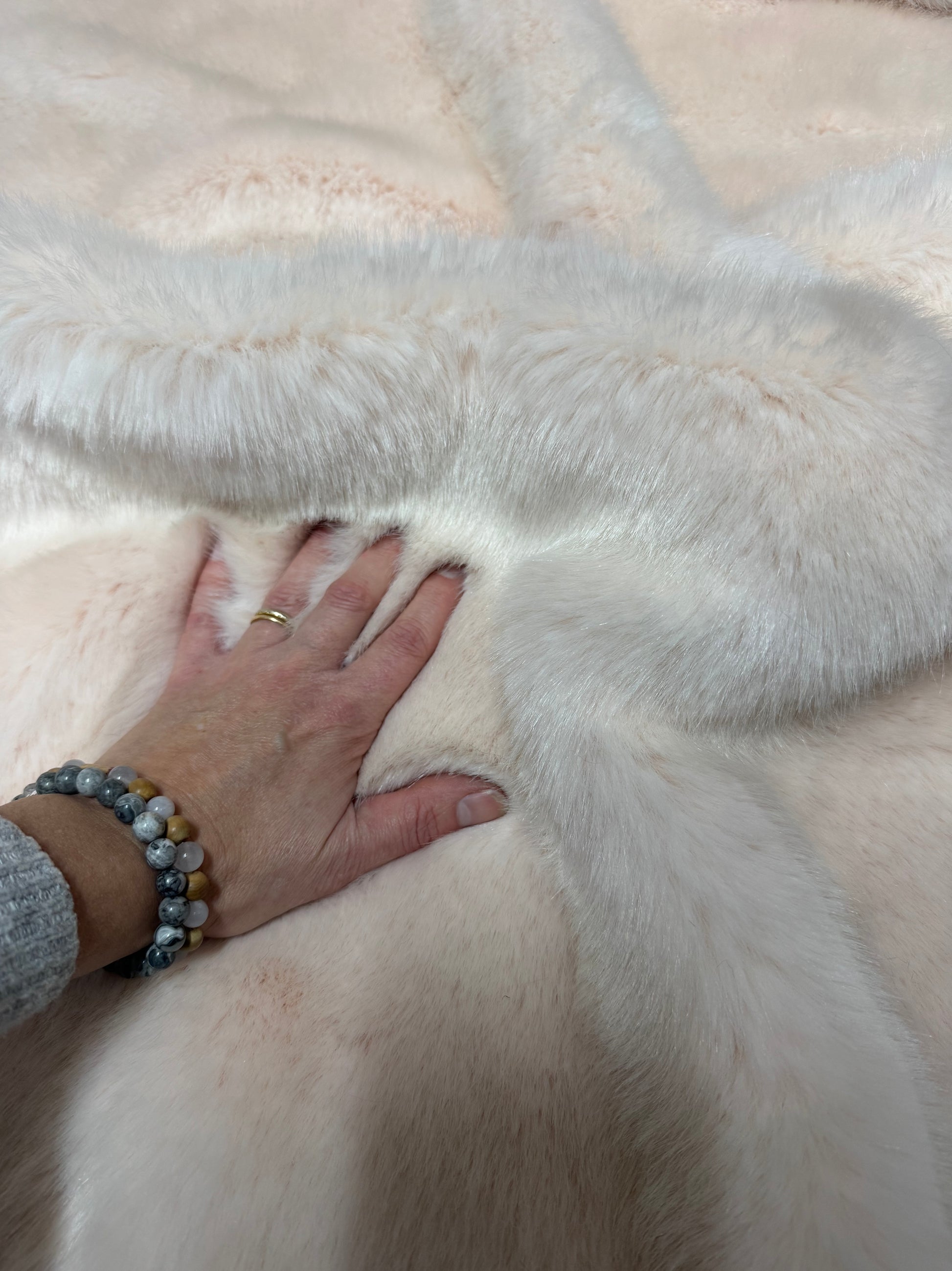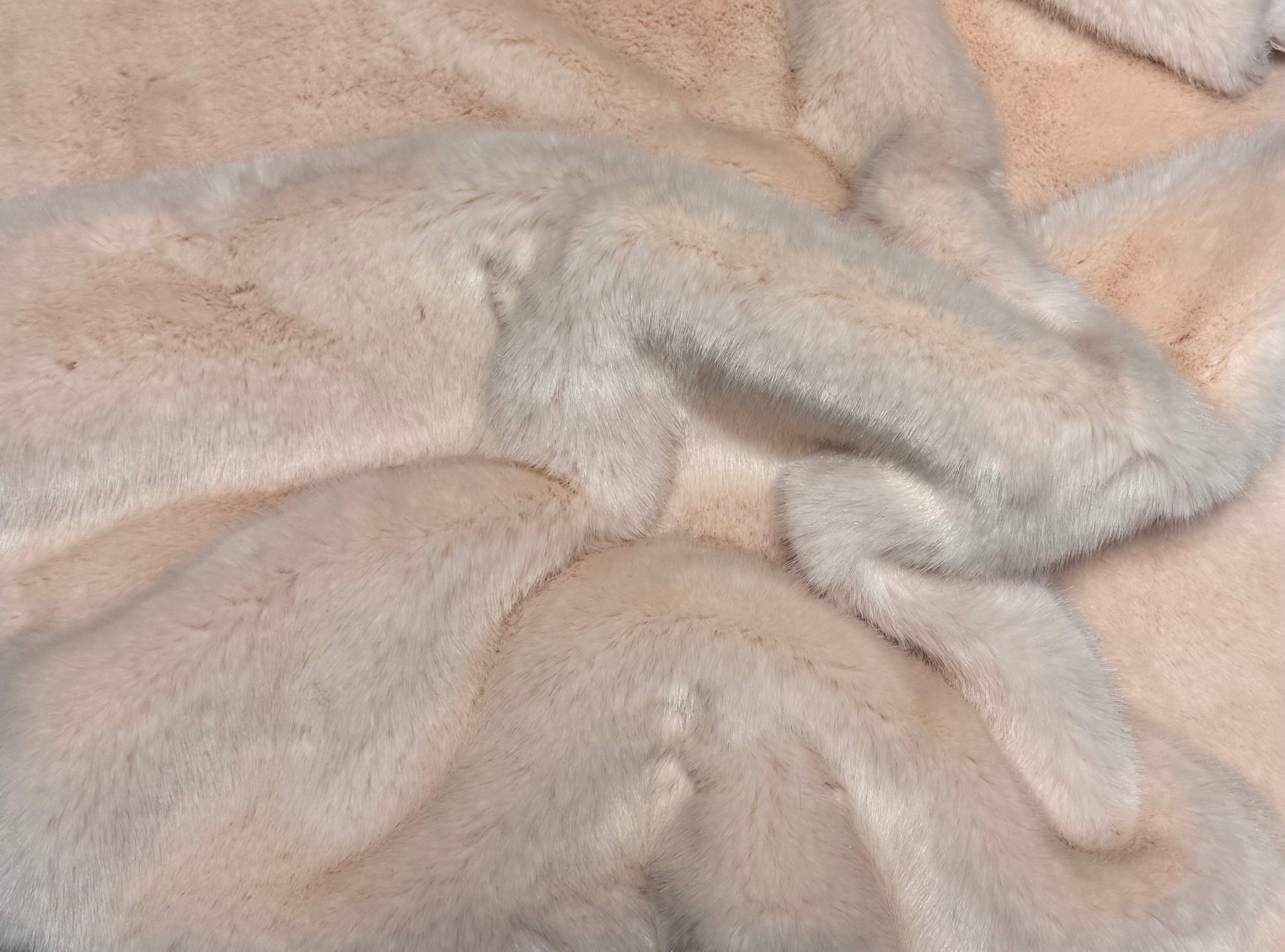 Apportez douceur et élégance à vos créations avec cette fausse fourrure épaisse de qualité, au coloris beige rosé délicat et lumineux.