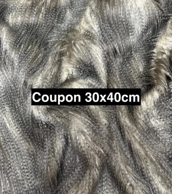 Superbe fausse fourrure gris nuancé, au poil très long avec un bel effet plumes, offrant un rendu aérien et très réaliste.