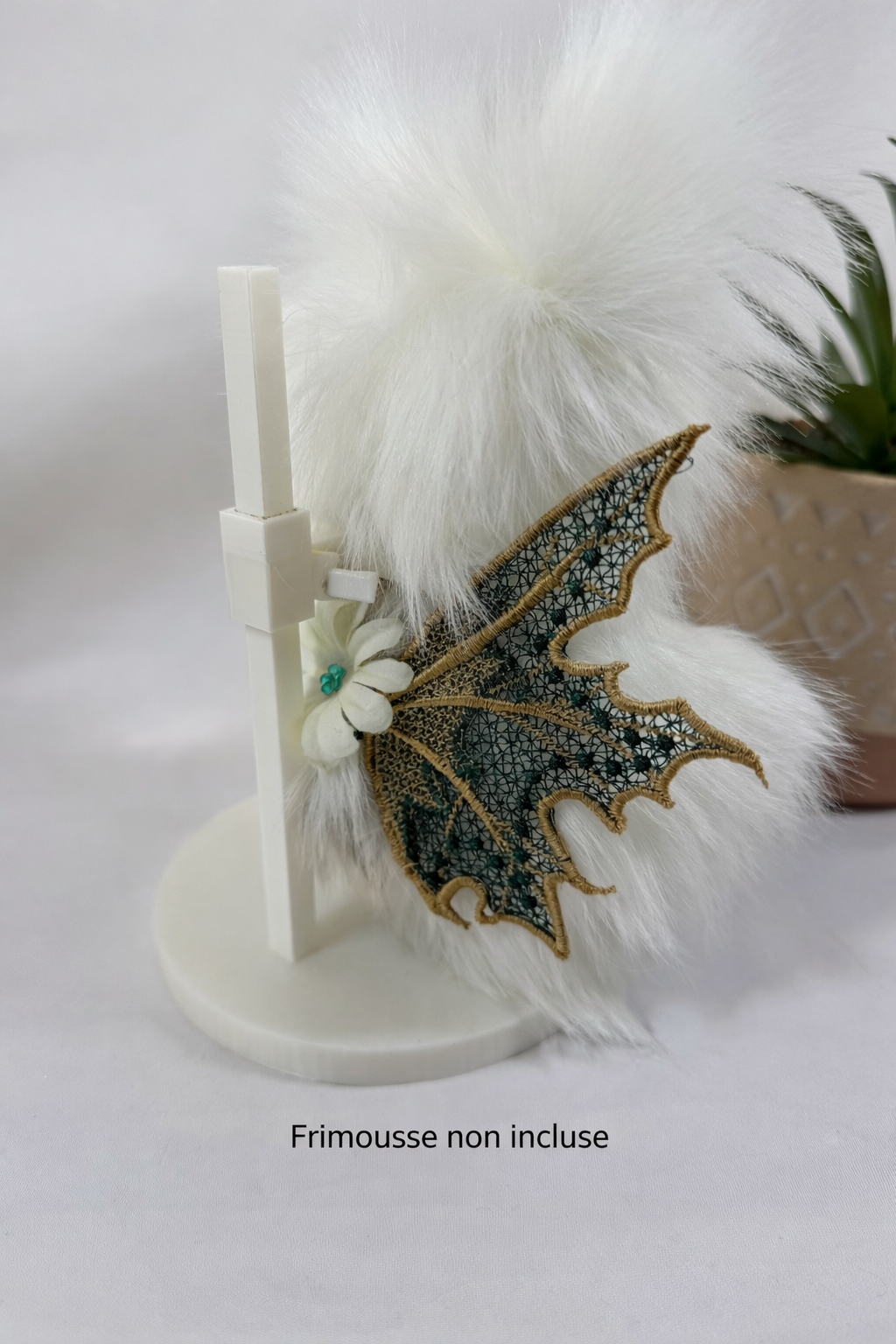 Conçu spécialement pour les Frimousses, ce support permet de les maintenir en position debout tout en respectant leur forme, avec ou sans ailes.