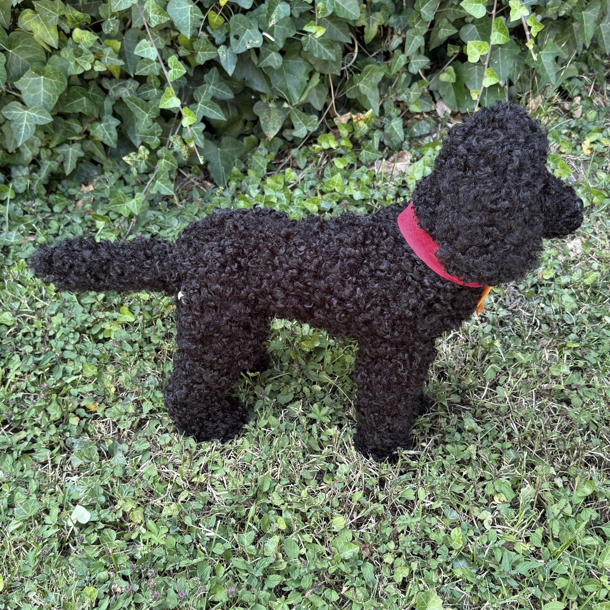 Voici Réglisse, un superbe caniche noir réaliste 🖤 entièrement fait main, conçu pour les collectionneurs et les amoureux de chiens miniatures.